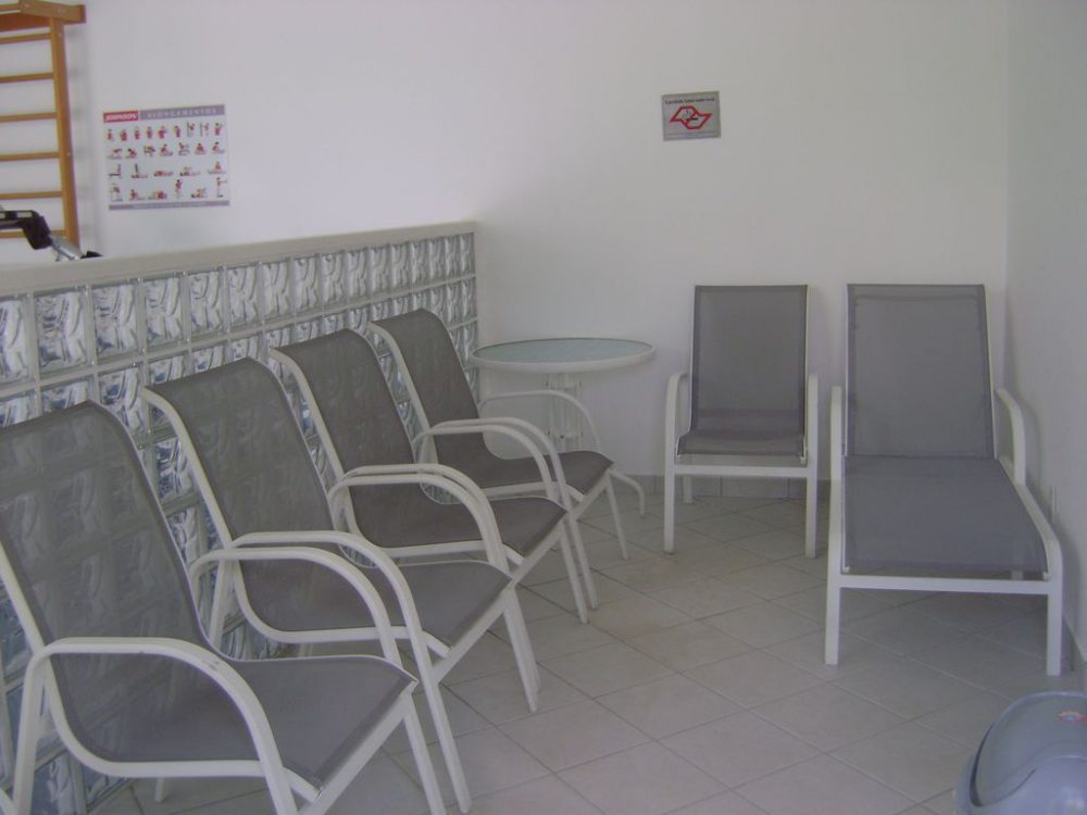 Temos no prédio, uma enorme piscina com vários espaços, raia de 25 mts para natação, área social e infantil, sauna, espaço fitness, salão de jogos TV, mezanino com sala para crianças e espaço para ping pong e pebolin, salão gourmet, churrasqueira, área de descanso e quadra de tênis.