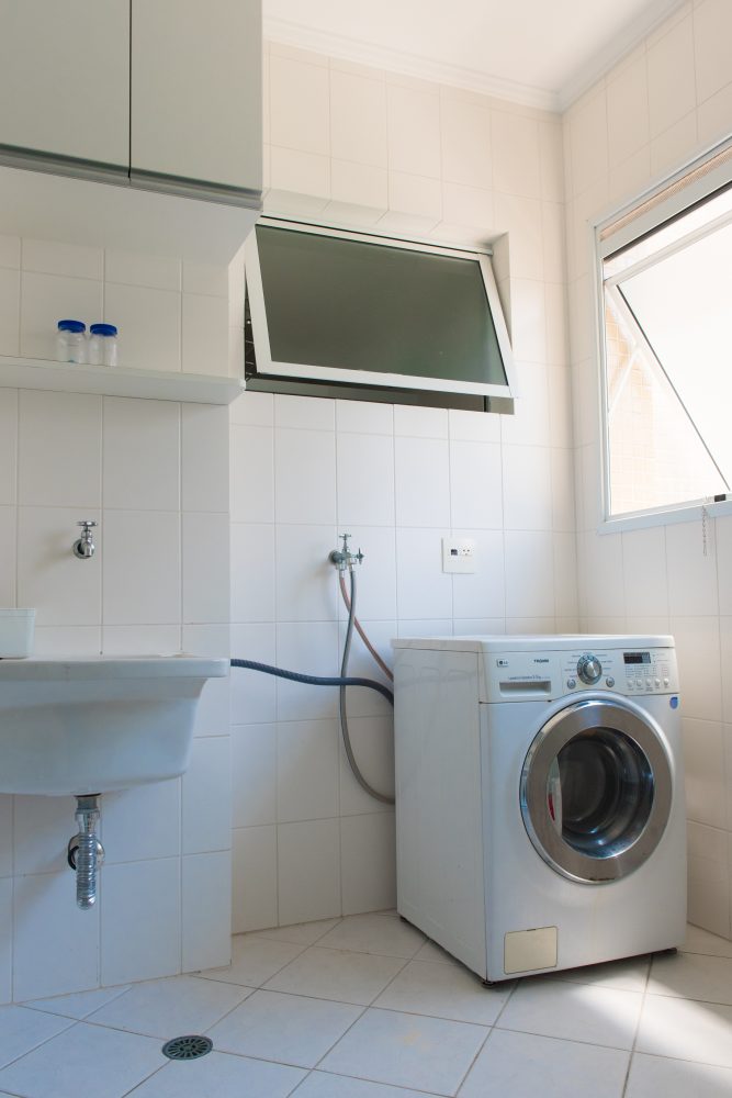 na varanda e janela da segunda suite e limitador de abertura nas janelas da área de serviço.